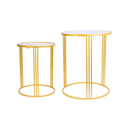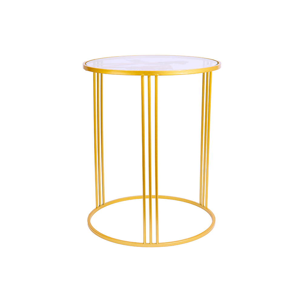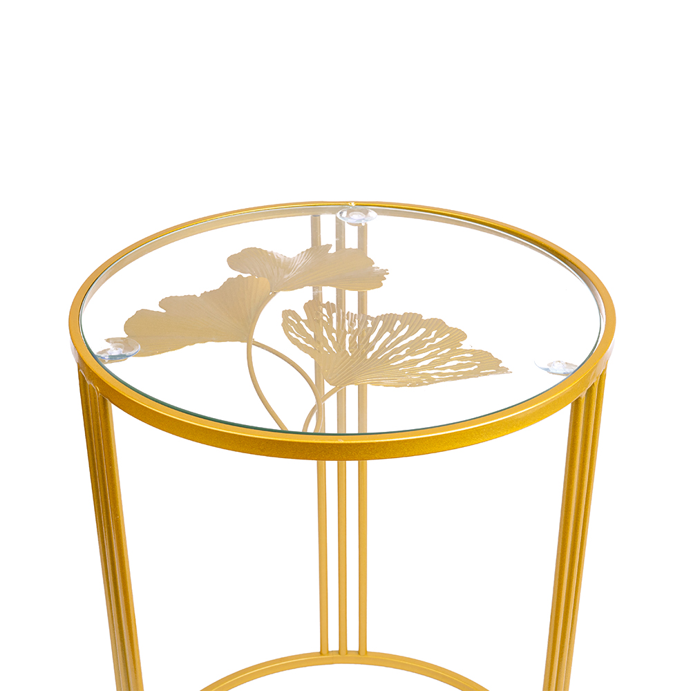 Gold metal accent table with clover design glass tabletop