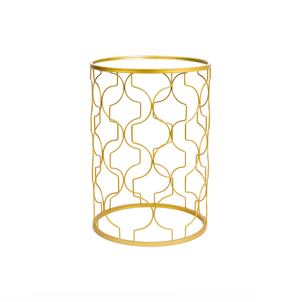 Mirror top gold metal frame accent table